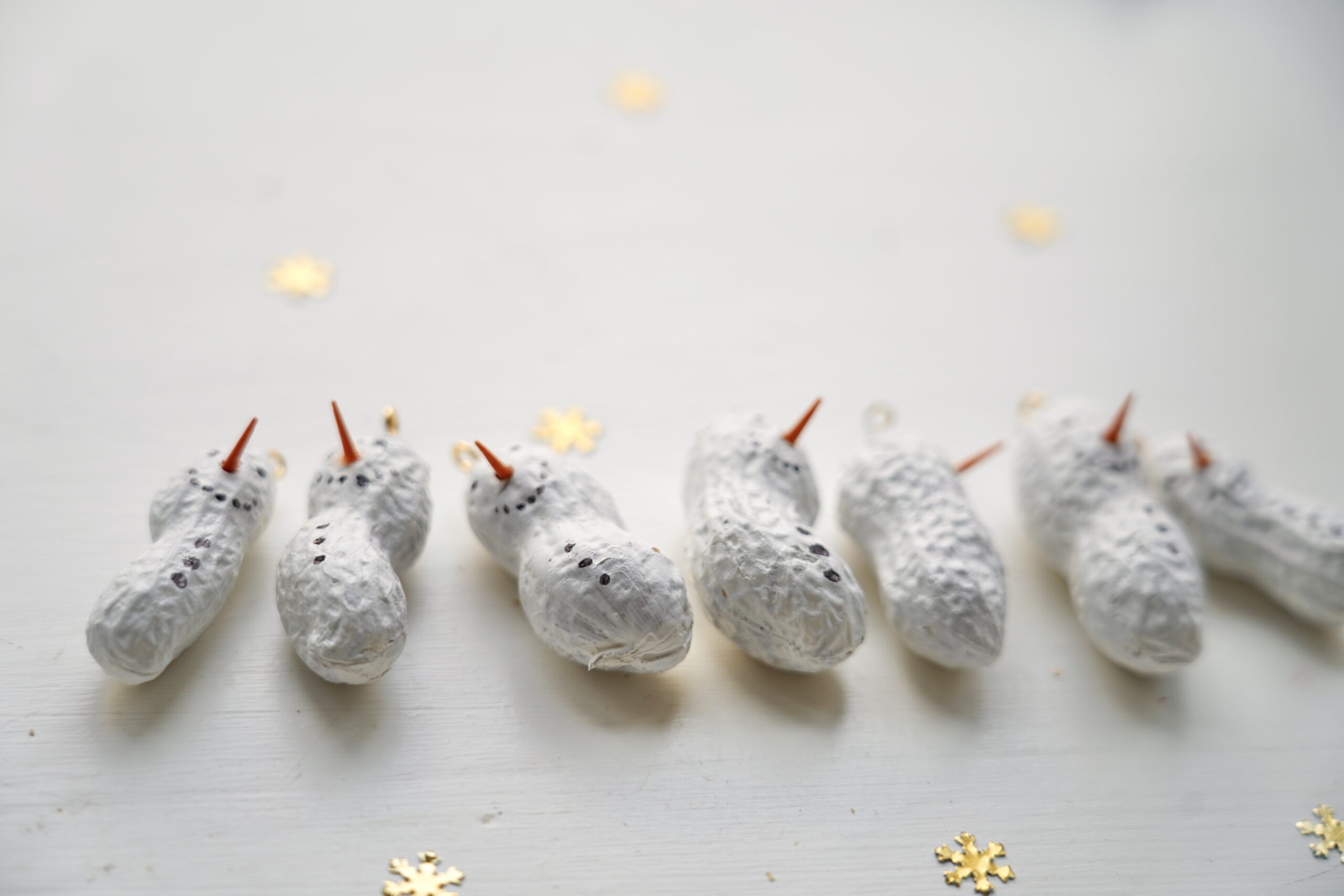 Winterbasteln mit Kindern: Kleine Schneemänner aus Erdnüssen
