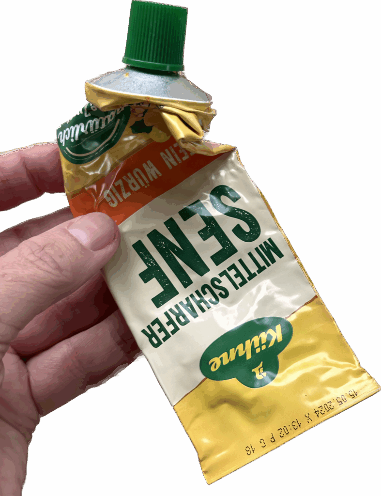 💡Tipp: Wenn du die Tube nach dem Entleeren direkt aufschneidest und abspülst, lassen sie sich später viel leichter verarbeiten – und du hast immer sauberes Material zur Hand , wenn dich die Bastellust packt.