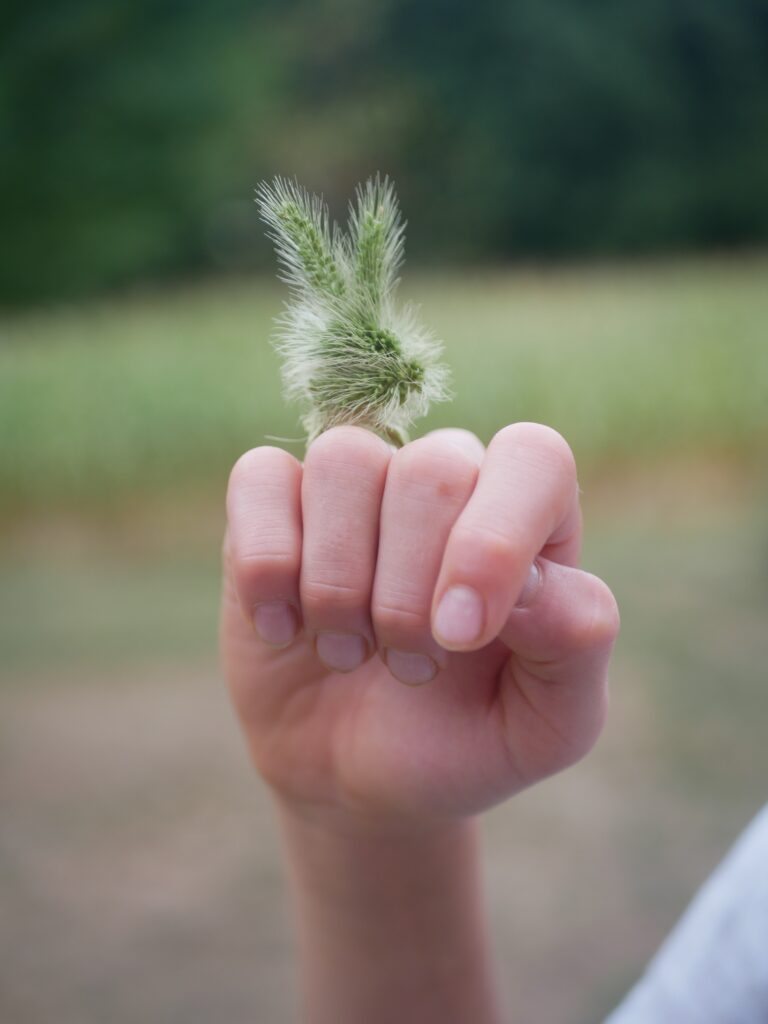 Wie gut, dass die schönsten Bastelmaterialien einfach direkt hinter der Hecke wachsen! Kaum ist Spätsommer, steckt die Borstenhirse am Ackerrand ihre wuscheligen „Fuchsschwänze“ in die Luft – perfekt zum Zwirbeln, Knoten und Verlieben. Zwei Halme später wird daraus ein Häschenring, ein weiterer Schwung und zack: ein Herz. Einfach nur Waldluft, Ackerbrise und fünf Minuten Naturmagie (manchmal sogar ein bisschen klebrig – danke, Setaria)