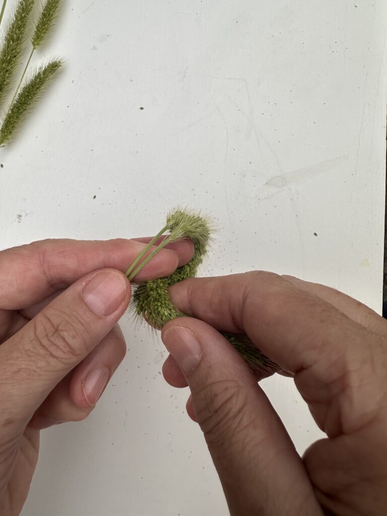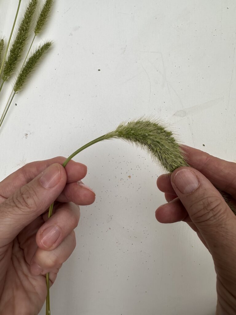Du benötigst zwei Stile der Borstenhirse. – Entferne zunächst vorsichtig die langen grünen Blätter.